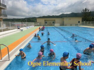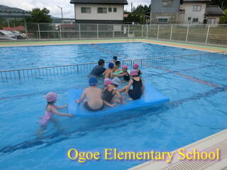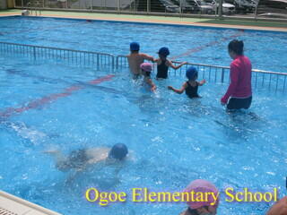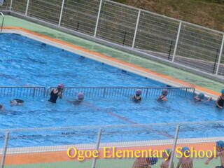 1・2年生も水泳学習を始めました。水を怖がらないよう、水遊びから早く水に慣れると良いですね