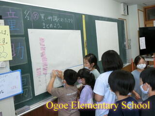 4年生は2年生の時の担任の先生に今日から2週間、国語「一つの花」の授業を受けることになりました。現在福島大学大学院にて学んでいる2年生の時の担任の先生が、研究テーマの検証授業を行うために大越小の教壇に2年ぶりに立つことになったためです。子どもたちも元担任の先生の問いかけや指示に積極的に反応し、楽しそうに学習していました