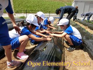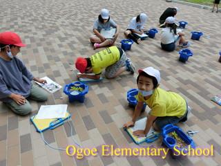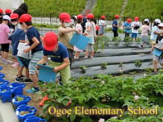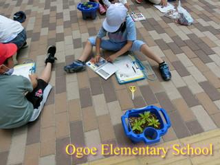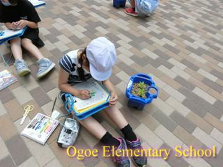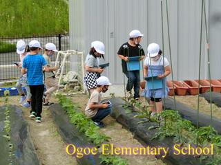 2年生が植えた植物もだんだんと生長してきています。今日はその観察でipadを使って生長の記録写真を撮っていました