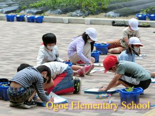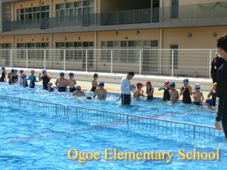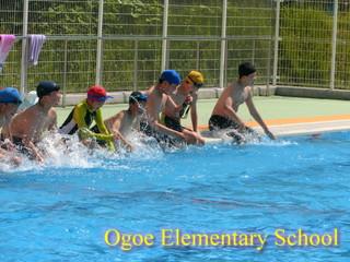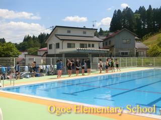 その後、今年度の水泳学習のトップをきって、上学年児童が早速プールに入り、歓声を上げていました