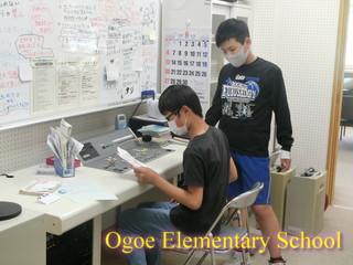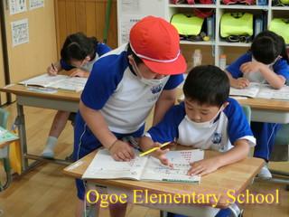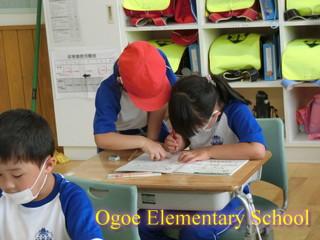 算数の練習問題を解いています。早く終わった子は、紅帽子にして、分からないで困っているお友だちにヒントを与えていますお友だちに教えることによって、更に理解も増してきますね。