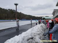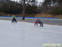 2月13日深夜の地震の影響で、屋内スケート場から屋外スケート場へ変更しましたが、大きなスケートリンクで子どもたちは伸び伸びと活動していました。