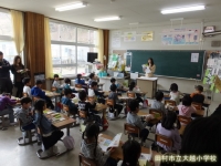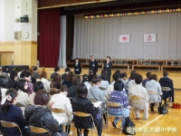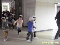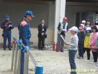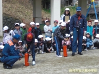2校時目に避難訓練を行いました。地震の時の身の守り方、火災の時の避難の仕方について全校生が真剣に学びました。訓練の後には、少年消防クラブ入隊式と消火訓練を行いました。