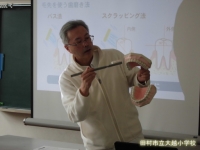 今日は5・6年生の歯科検診が行われました。歯科検診の後に5年生は、学校歯科医の土屋先生からむし歯予防について教えていただきました。口の中の病気には、むし歯だけでなく歯肉炎という病気があることを教わり、自分の歯肉の状態を確認しました。また、歯肉炎予防のためのバス法という歯みがきの仕方を学びました。