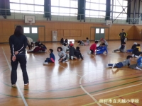 新校舎をつくっているため、校庭が使えませんが、たくさんの子どもたちが特設陸上部に参加しています。工夫しながら少しずつ練習を積み重ねています。「校庭がない」学校の陸上への挑戦が始まりました。