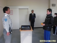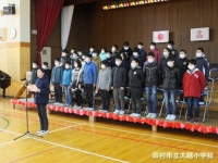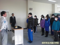 大越小学校少年消防クラブ員として活動してきた6年生は、田村消防署大越分遣所副分遣所長さんから、「消防協力者認定書」をいただきました。防火活動の大切さについてお話を聞き、卒業しても家庭や地域の人たちに火災予防を呼びかけようと誓いを新たにしました。