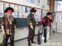 今日は節分。大越小に鬼がやってきました。実は、田村青年会議所の皆さんによる「たむら鬼走り」の一環で、鬼に扮した6名の方々が本校にサプライズでおいでくださいました。1・2年生の教室を訪れ、児童の追い出したい鬼の発表に耳を傾けたり、一緒に鬼退治をしたりしました。今日の鬼さんはみんな優しくて、いい鬼さんばかりでした。