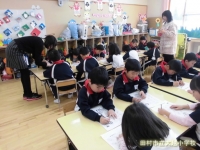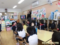 今日は、1学年担任の鈴木先生が大越こども園を訪問して出前授業を行いました。年長児のみなさんに、小学校の学習や行事の様子を知らせたり、正しい鉛筆の持ち方を教えたりしました。2月には1日入学もあり、そこでも現1年生や2年生と楽しく交流する予定になってます。入学が待ち遠しいですね。
