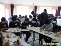 今日のメインはハロウィンでした。マスクを作ったり、ハロウィンとは何かを学んだりした後ゲームを楽しみました。他校の友達ともどんどんうちとけて、会場いっぱいに歓声が響きわたりました。ALTの先生方にはいろいろな準備をしたり楽しくなるための工夫をたくさんしたりしていただきました。ありがとうございました。