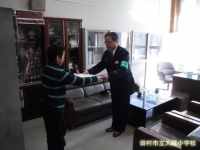 2015年11月4日 16時24分本校6年の新田君が、見事「福島県地域安全作文コンクール」で佳作に選ばれました。県全体で6名しかいない入賞者の一人となりました。今日は田村警察署小野分庁舎より所長様はじめ3名の署員の方々がおいでになり、校長室で表彰式を行いました。新田君は急増している「オレオレ詐欺」について記述しました。