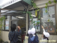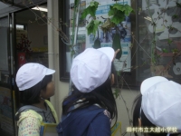 4年生は理科の学習でヘチマを育ててきましたが、残念ながらうまく育ちませんでした。「JAおおごえ支店には大きく育ったヘチマがあるよ。」こんな情報を得て、今日はJAさんにおじゃましてヘチマを観察させていただきました。夏と比べて実が大きく育ったことや、葉の変化など詳しく見つけることができました。JAさん、ありがとうございました。
