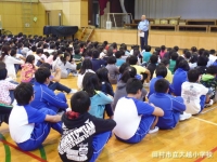 今日は時間を予告しない避難訓練を行いました。今まで実施したことのない清掃時間帯の訓練でしたが、6年生の班長さんを中心に全校児童がとてもスムーズに避難できました。反省会では、教頭先生から非常時には静かに指示を聞くことの大切さを教えていただきました。