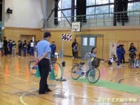 9月21日から9月30日まで「秋の全国交通安全運動」が展開されています。PTAの皆様には朝の交通指導へのご協力ありがとうございます。学校では本日、田村警察署よりお二人の講師をお招きして交通教室を実施しました。5・6年生は体育館の模擬道路を使って正しい自転車の乗り方を学びました。県内では、自転車による交通事故が増えているそうです。交通ルールを守ること、ヘルメットをかぶることなどについてしっかり学びました。