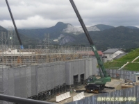 現在の校舎新築工事進捗状況です。工事は順調に進んでいるようです。2階・3階の高さまで型枠が立ち上がってきました。子どもたちは、出来上がりを楽しみにしながら学校生活を送っています。