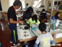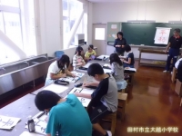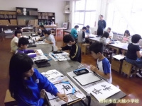 今日は、学校支援ボランティアの石井ゆみ子先生においでいただき、5年生の書写の授業のご指導をいただきました。5年生は32名1クラスの大所帯のため、2クラスに分かれて熱心に取り組みました。石井先生の分かりやすいご指導で、バランスのよい作品が次々に仕上がっていました。石井先生ありがとうございました。