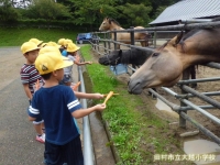 今日は1年生が生活科で、石筵牧場に出かけました。動物にえさをあげたり、お買い物体験をしたりと貴重な時間を過ごしました。また、いきものや自然とふれ合い、思いっきり外遊びをしてきました。