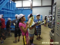 7月2日に4年生は、大越浄水場で飲み水などきれいな水をつくるための工夫やそこで働く人たちの努力について学びました。きれいな水がたっぷり入った大きな貯水槽をのぞいてびっくりしました。