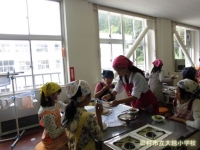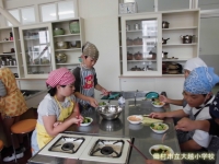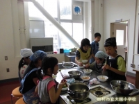 今日は野菜サラダづくりをしました。ブロッコリーや人参の切り方、ゆで方が上手にできました。手づくりのフレンチドレッシングやオーロラソースもおいしくできて大満足です。みんな家でも作ってみたいと意欲を高めていました。