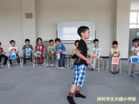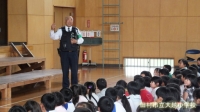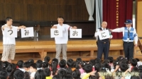 不審者が校内に入ってきたという想定で避難訓練を行いました。連絡もスムーズにできて短時間ですばやく全校生が体育館に逃げることができました。その後、先生方が不審者が入ったときにどのように対応するか訓練する様子をみんなで見ました。ご指導下さった大越駐在所遠藤様、スクールサポーター國分様、ありがとうございました。
