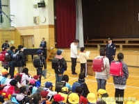 今日は、大越駐在所の遠藤様を講師にお招きして交通教室を実施しました。模範の歩き方、横断歩道の渡り方についてお話を聞いたり、モデルの実技を見たりしました。その後、先生方の引率のもと、集団下校しながら正しい歩行のし方を学びました。今年度も交通事故に遭わないよう、ルールを守って登下校できるようご協力下さい。