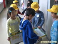 今日は、2年生が1年生を案内して学校探検をしました。2年生は、「この教室には○○先生がいます」「この教室は○○をするところですよ」とていねいにやさしく教えていました。