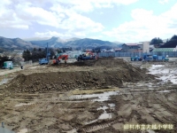 3月の校庭の様子です。重機がたくさん入ってどんどん工事が進んでいます。ダンプが往来したりしていますので,児童の安全に十分配慮していきます。