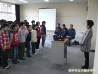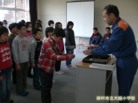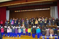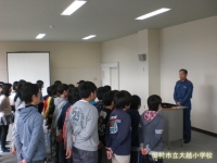 2015年3月3日 17時20分 6年生は,これまで少年消防クラブ員として「火事を出さない,火事を見つけたら知らせる」などの活動を行ってきました。小学校卒業と同時にこのクラブも卒業となりますが,これからも同じ目的で活動してほしいという期待を込めて期待書交付式が行われました。大越分遣所から3名の方々においでいただきました。