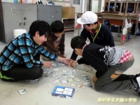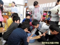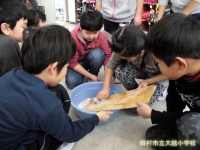 3年生は、社会科の学習で「洗濯板」を用いた洗濯を体験しました。「昔の人の知恵はすごいね!」と、歓声を上げながら活動しました。