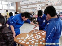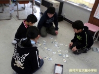 5・6年生のカルタ大会は、迫力満点。ことわざの言いまわしにもすっかり慣れているので、「はいっ」と元気よく、素速く札に手が伸びます。外遊びができない日は、ぜひカルタに親しんでほしいと思います。