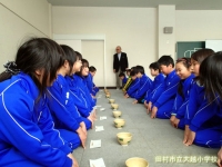 4年生が、総合的な学習の時間に茶の湯体験を行いました。茶道宗徧流芳樹会の皆様を講師にお迎えし、座り方や立ち方、歩き方、お茶の運び方、お茶のいただき方などを教えていただきました。子どもたちは、緊張した面持ちで真剣に取り組んでいました。
