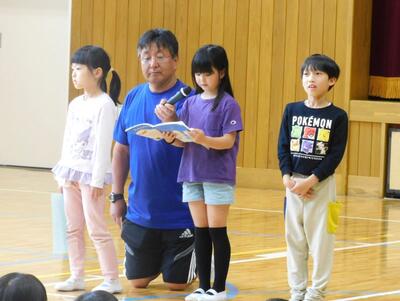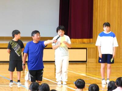 2024年6月5日 18時30分プール開きを行い、各学年の代表児童が、水泳学習のめあてを発表しました。