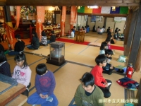 4年生は,曹洞宗長源寺さんにお世話になり座禅体験を行いました。住職様から座禅のやり方についてお話をいただき,20分間の座禅に挑戦しました。普段の学校生活では絶対にない無言の時間に緊張しながらも,落ち着いた時間を経験することができました。