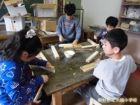3年生は,図工で木材を使った学習にチャレンジしています。慣れない手つきで釘を打ったり木材同士を組み合わせたり,苦戦しながらも楽しく活動しています。