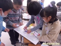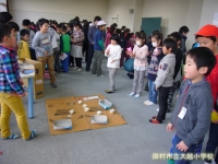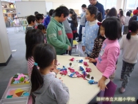 1年生が、昼休みに「おもちゃフェスティバル」を開きました。生活科の時間に作ったおもちゃやゲームのお店を開き、全校生を招待しました。子どもたちは、自分のお店へお客さんを呼ぼうと大きな声でかけ声をかけたり、ゲームの説明やダンスなどを一生懸命行っていました。たくさんのお客さんに喜んでもらえて、1年生は全員大満足でした。