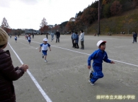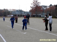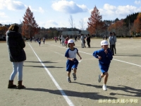2014年11月20日 12時30分一昨日に引き続き、今日は上学年(4~6年)マラソン大会が行われました。今朝は冷え込みましたが、日中は風もなく穏やかな天候に恵まれ、多くの保護者の方々も応援に駆けつけてくださいました。子どもたちは苦しさに耐えながら、最後まで一生懸命走り抜きました。上学年の大会らしく、迫力のある走りが随所に見られました。