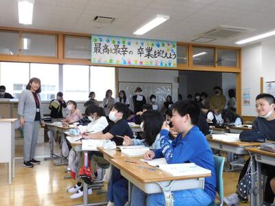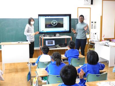 外国語指導助手のリンズィ先生と楽しく英語の学習に取り組んでいます。