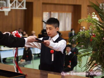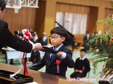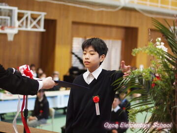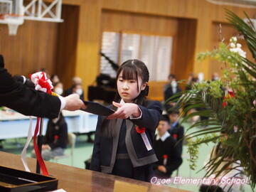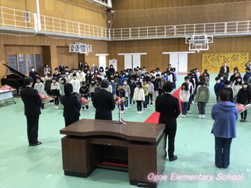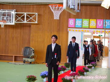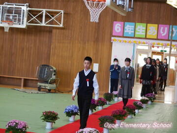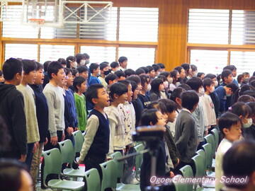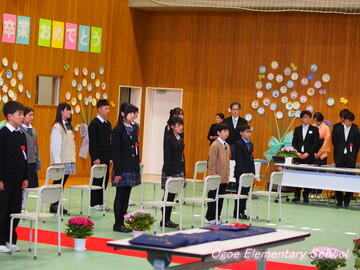 「今日の卒業式こそ、1年間のみんなの学習の締めくくりです。今こそ大越っこの“力”を見せよう!」