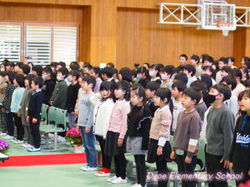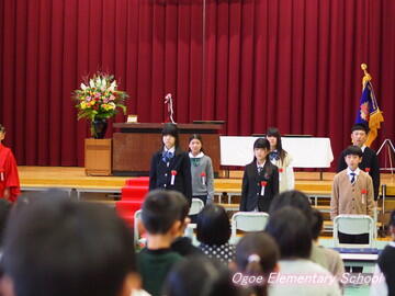 代表の5年生に合わせて、礼をします。1年生もしっかりできました。