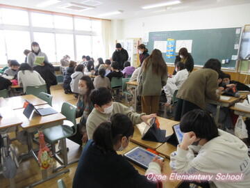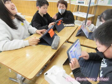 6年生は卒業を迎え、小学校生活を振り返って中学校で頑張りたいことをタブレットでプレゼンします。