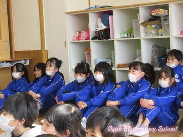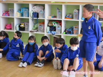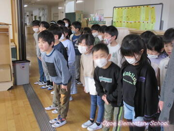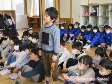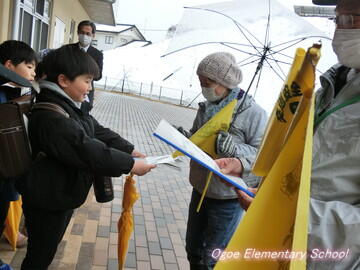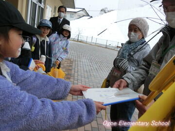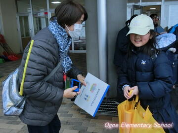 今年1年間12年生の子どもたちの放課後児童クラブへの歩行を見守っていただいたボランティアのお二人へ感謝の言葉とお手紙をお渡ししました。