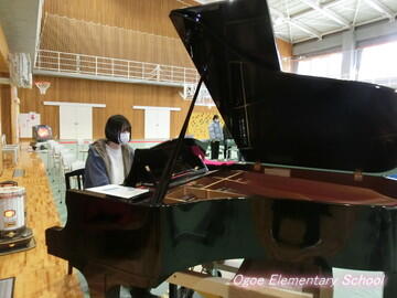 細かな動きなどは、学級で修正します。式の中で歌う「田村市民の歌」や校歌も練習しました。