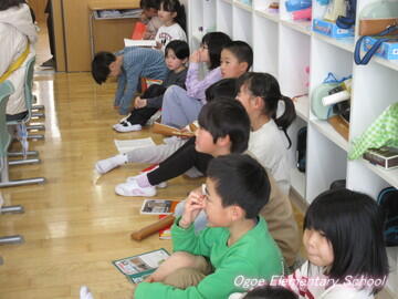 今日は、臨時の放送集会において小学生は体験していない地震や避難について話し、学級でも担任からのお話を聞くことにしました。