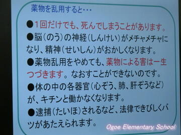 学校薬剤師の佐藤さんをお招きし、6年生の薬物乱用防止教室を開催しました。