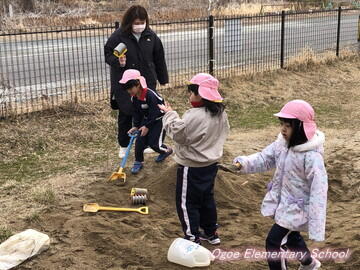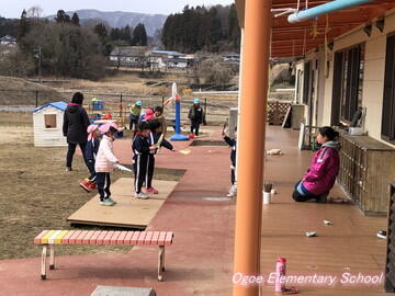 県教委の米屋指導主事、大越中学校長とともに、子どもたちの遊びの様子を見せていただきました。