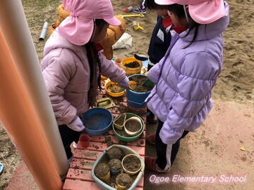 数を数えたり、砂山を高くしているときに「さらさらなんだ~」と物の性質に気づいたり、カップケーキを作ったあと水を足してクリームにしたりと様々に見えてきます。