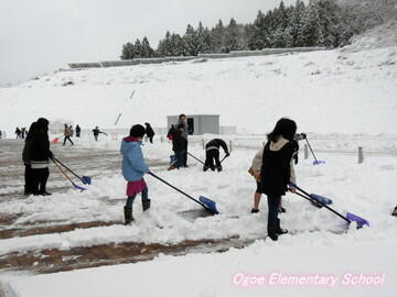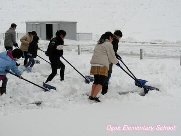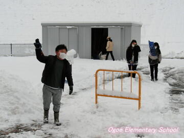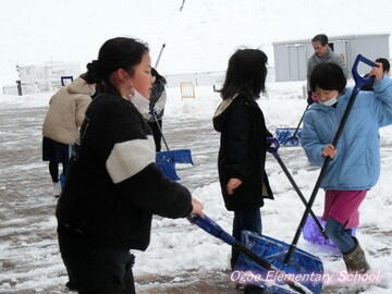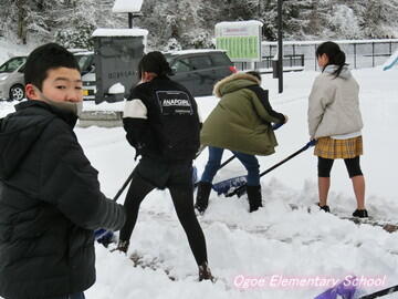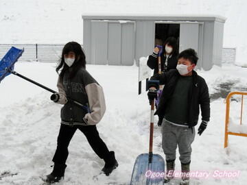 玄関前は、56年生が一気にみんなで除雪をしてくれます。