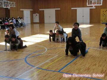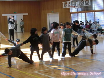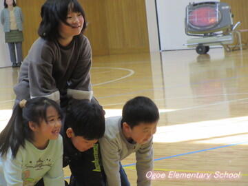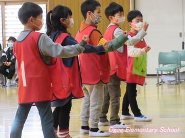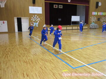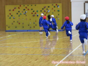 3校時には1年生が体育をしています。元気いっぱい身体を動かすと、温かくなるのですね!