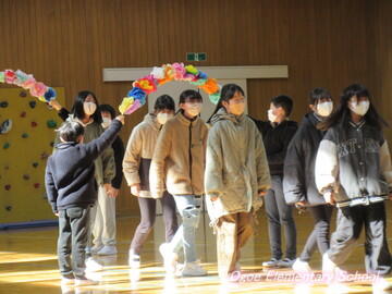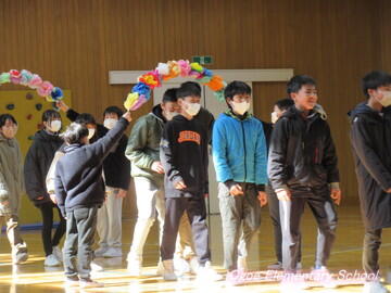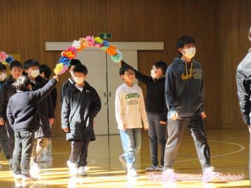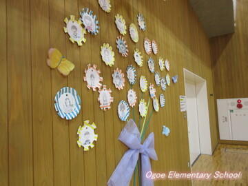 現在体育館には、あさっての6年生を送る会に向けた飾り付けがされています。