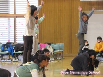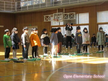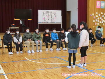 続いて、福島県教育委員会主催の「なわとびコンテスト」において、見事県下第3位に輝いた5年生に賞状を伝達しました。