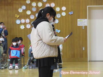 今回は、福島県かきぞめ展で「かきぞめ奨励賞」を受賞したはづきさんを始め、特選の児童を呼名して賞状を伝達しました。